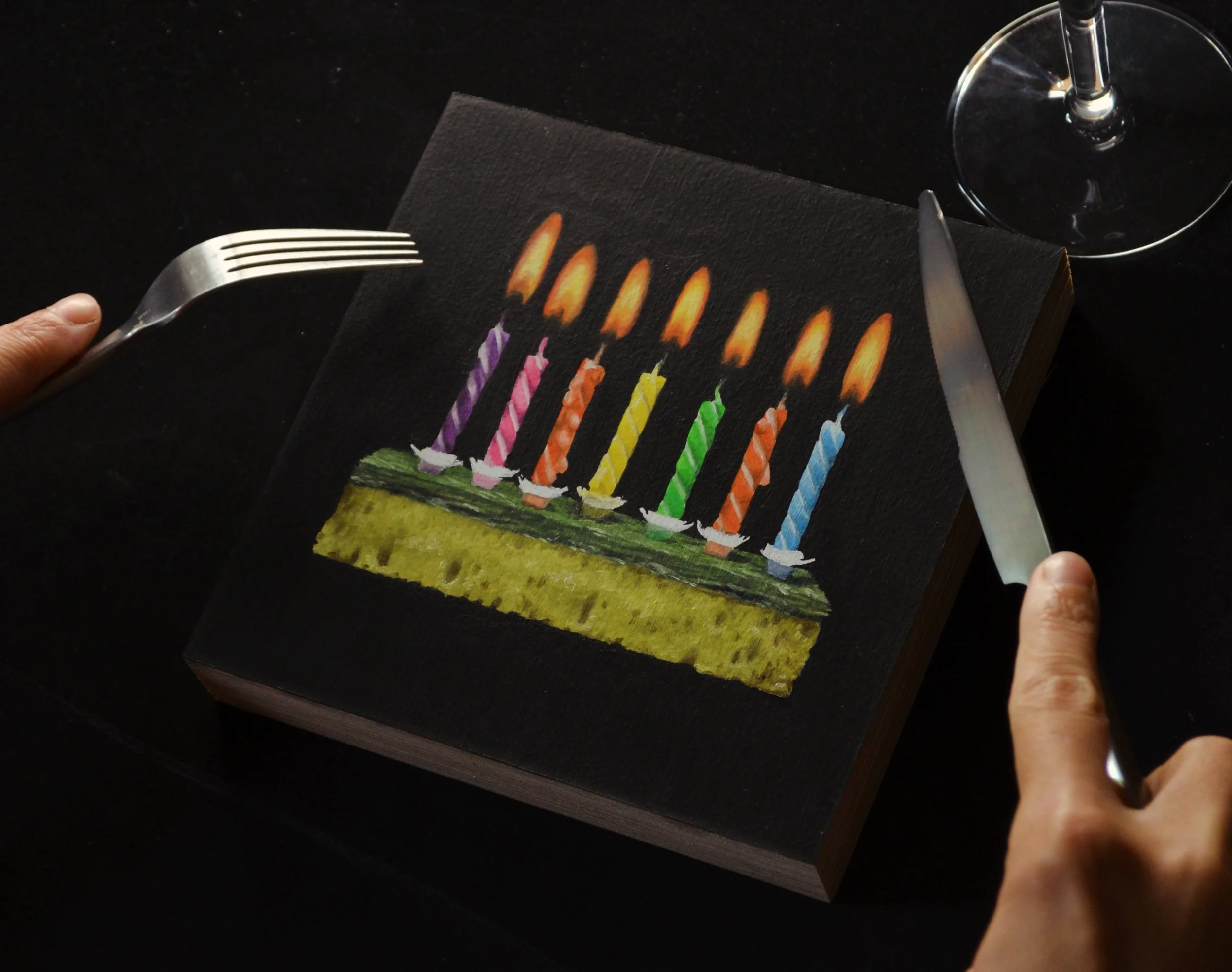Inspired by a dish sponge with candles jammed in it, Katie Barron and Juanny Tan created a special menu of paintings with paired dishes to be available for one night only. Crowds came, a line was formed, speeches were stumbled through and almost no photos were taken. It is widely considered to be the most successful oil paintings and dessert pairing exhibition extravaganza of Cameron Street during the 2020’s. The future is bright.